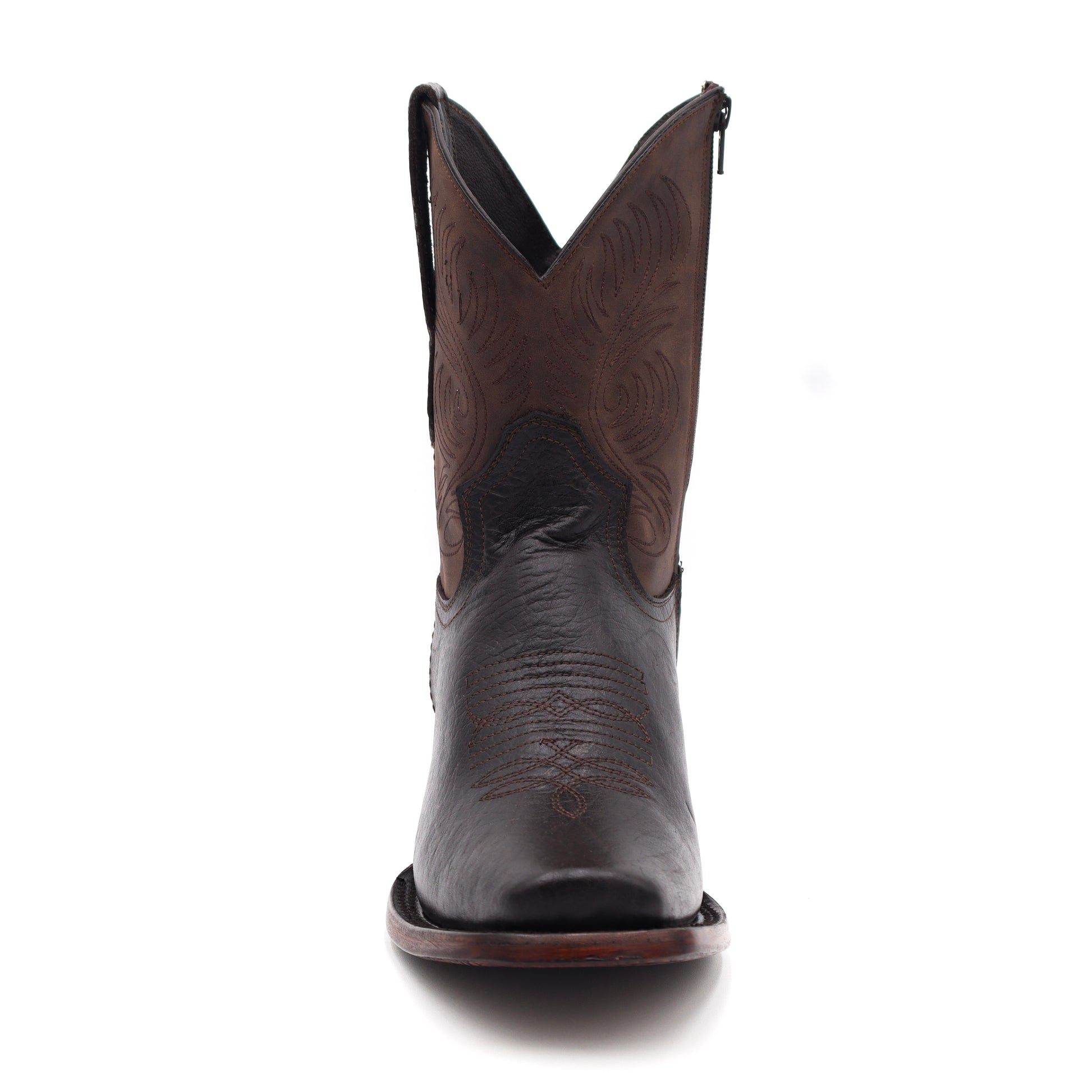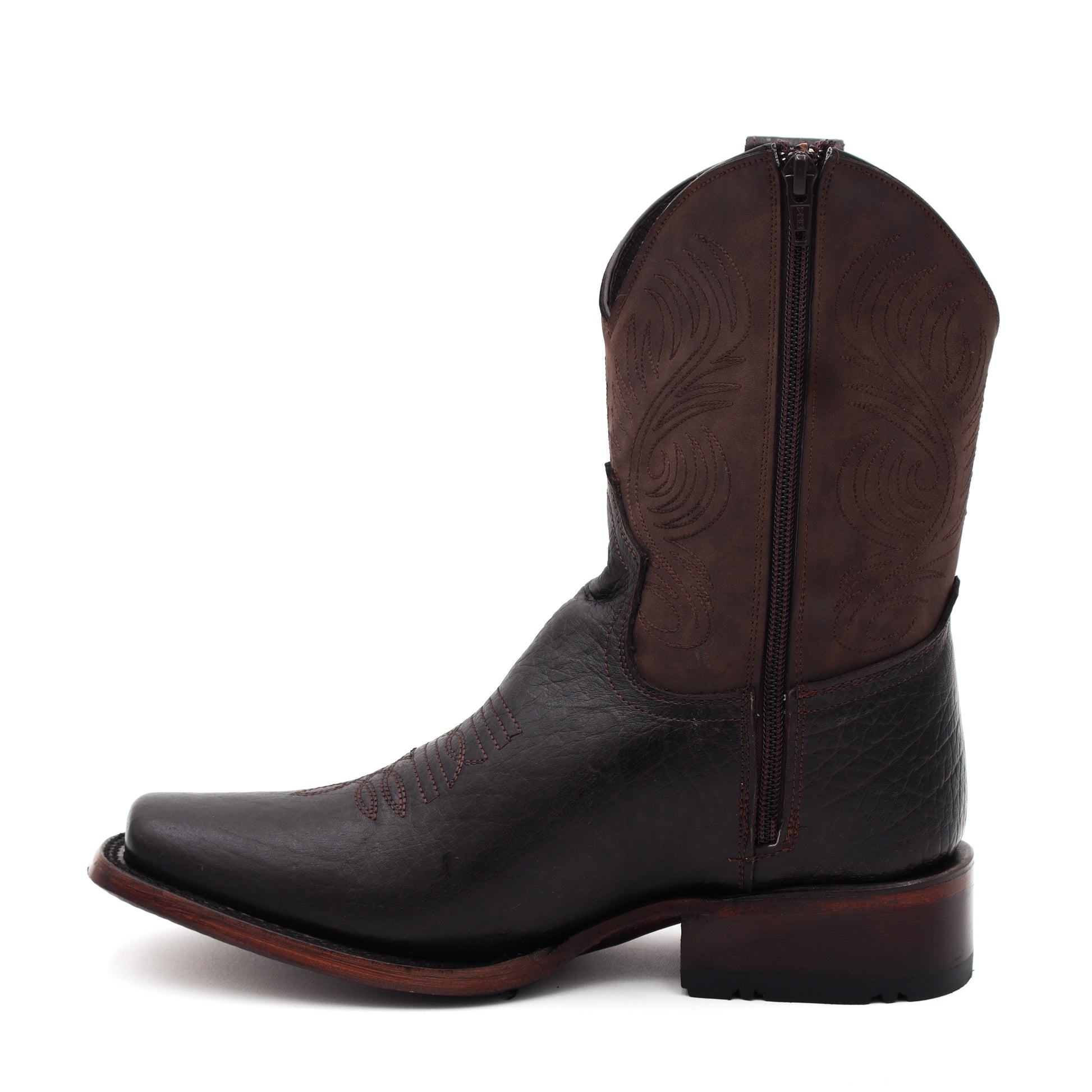 This Alaska Cuello Toro Café Cuadrada boot is designed with a skinny fit and convenient zipper closure, making it a versatile and comfortable option to pair with any pants. Its cowboy style adds a touch of fashion to its practicality.