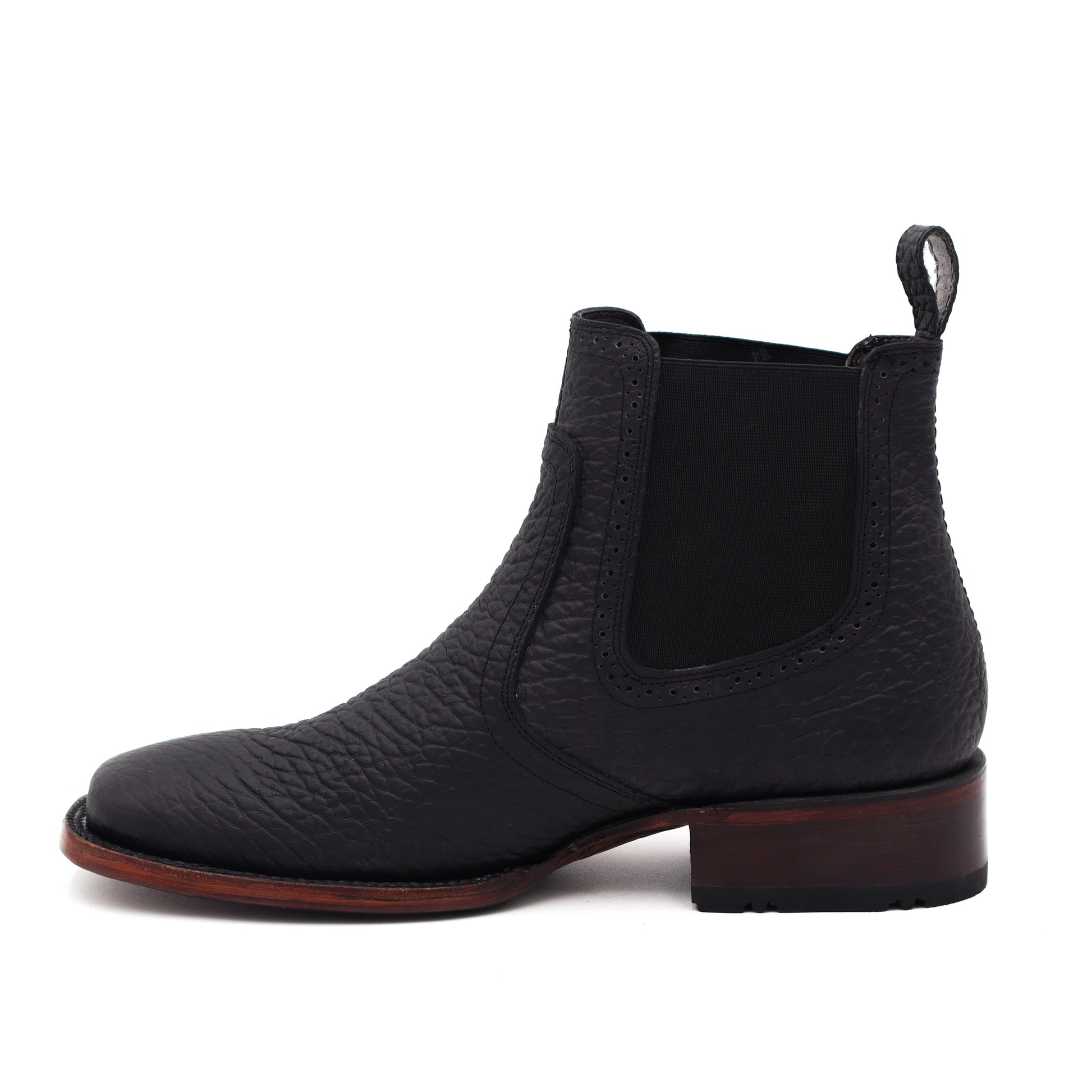 Experience the timeless elegance and superior quality of the “Corona Roca-Negro”. Crafted with black leather and a stunning rock finish, these boots not only make a statement, but also provide durability and comfort with a leather sole and ankle boot design. Elevate your style with the ultimate combination of fashion and function.
