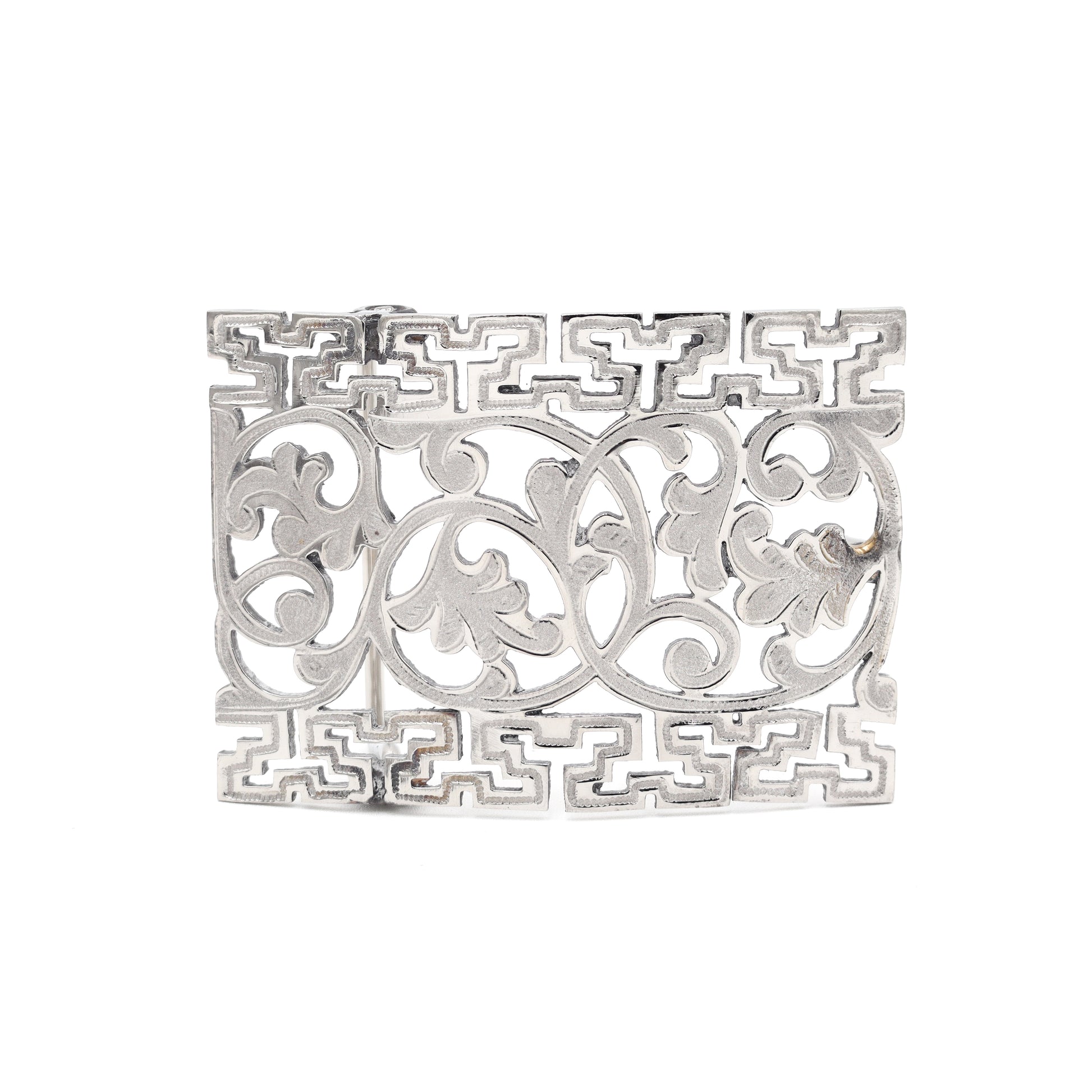 This 1.5-inch Monel steel buckle showcases a finely crafted rameado con grecas design, blending robust strength with refined Western artistry. Made from corrosion-resistant Monel steel, it offers durability for everyday wear while maintaining an authentic, elegant touch. Ideal for those seeking a high-quality accessory that combines traditional craftsmanship with lasting performance.