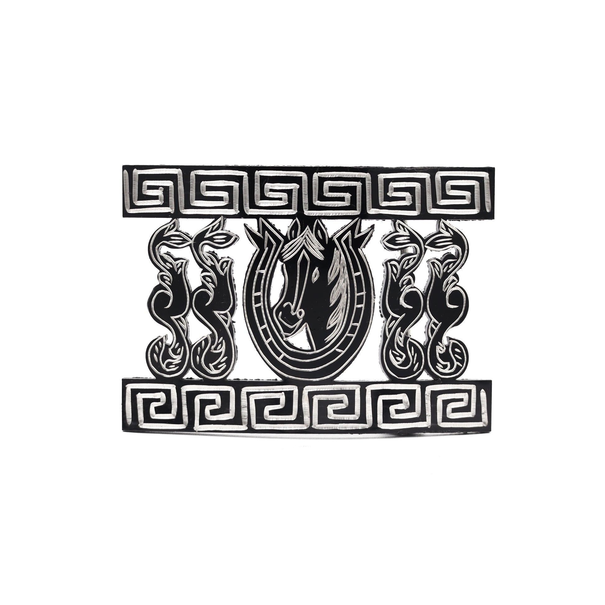 Hebilla de Acero Monel Negra - Herradura con caballo en olas