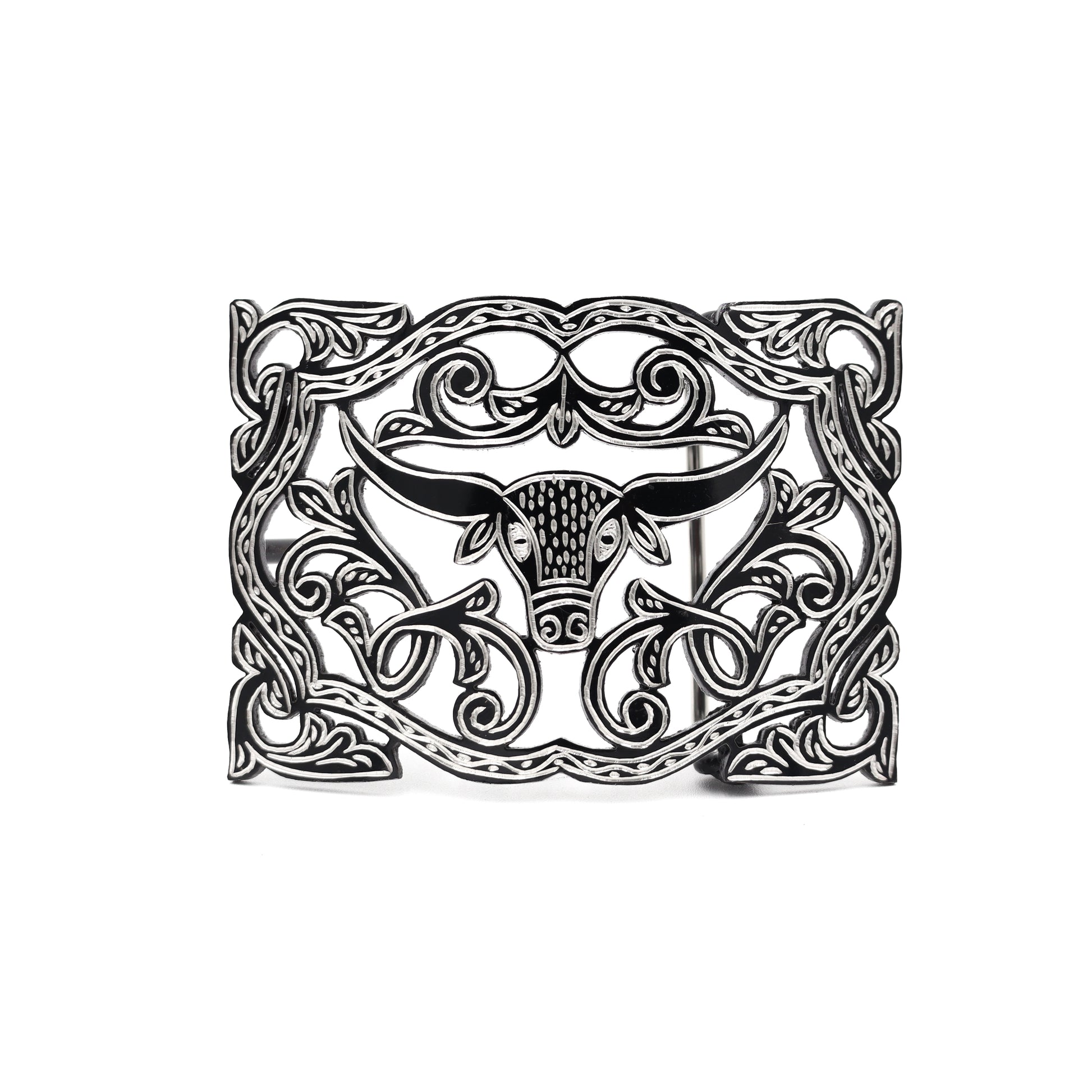 This 1.5-inch Monel steel buckle showcases a finely crafted rameado con toro design, blending robust strength with refined Western artistry. Made from corrosion-resistant Monel steel, it offers durability for everyday wear while maintaining an authentic, elegant touch. Ideal for those seeking a high-quality accessory that combines traditional craftsmanship with lasting performance.