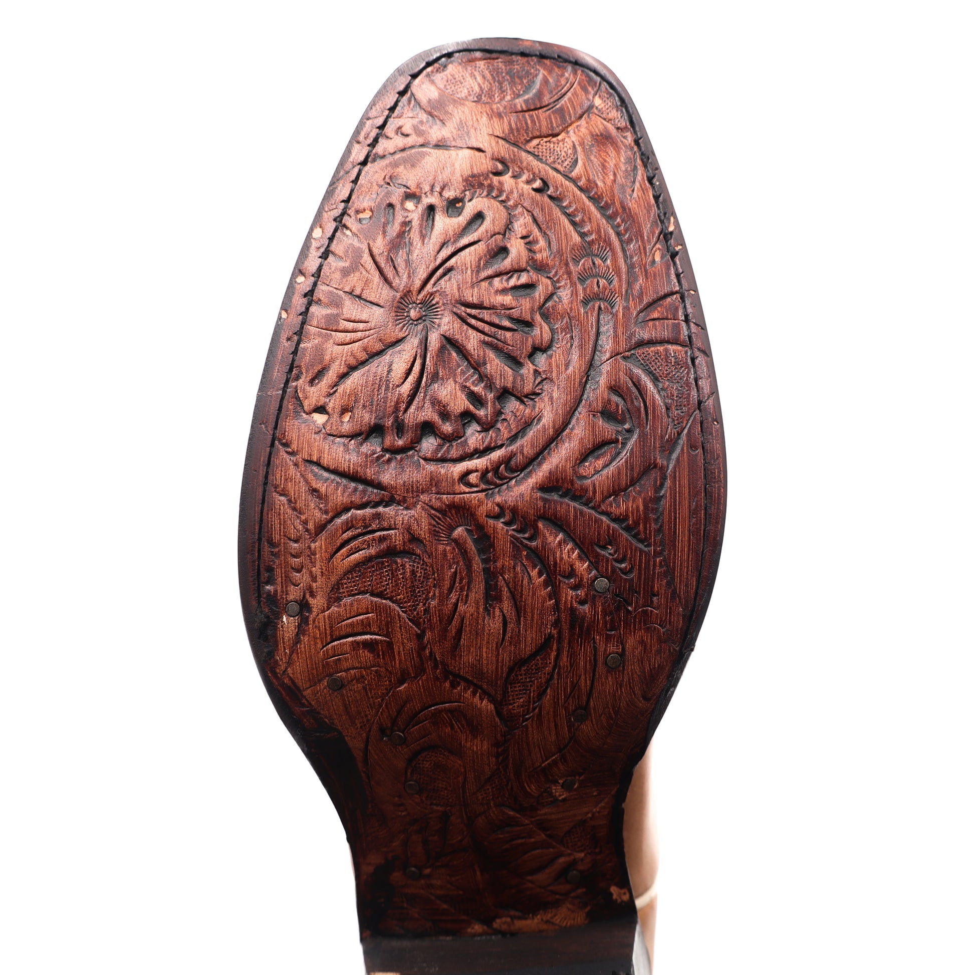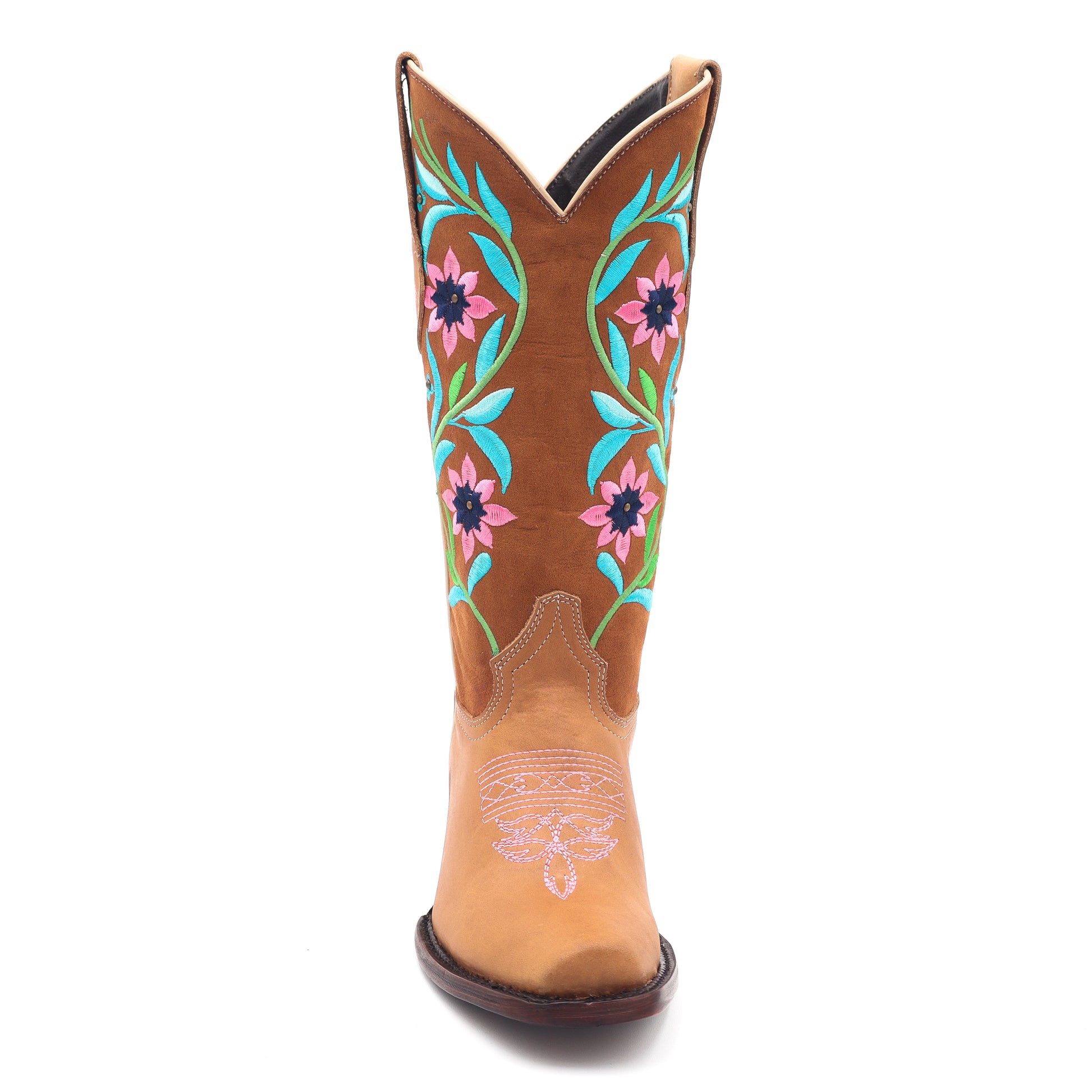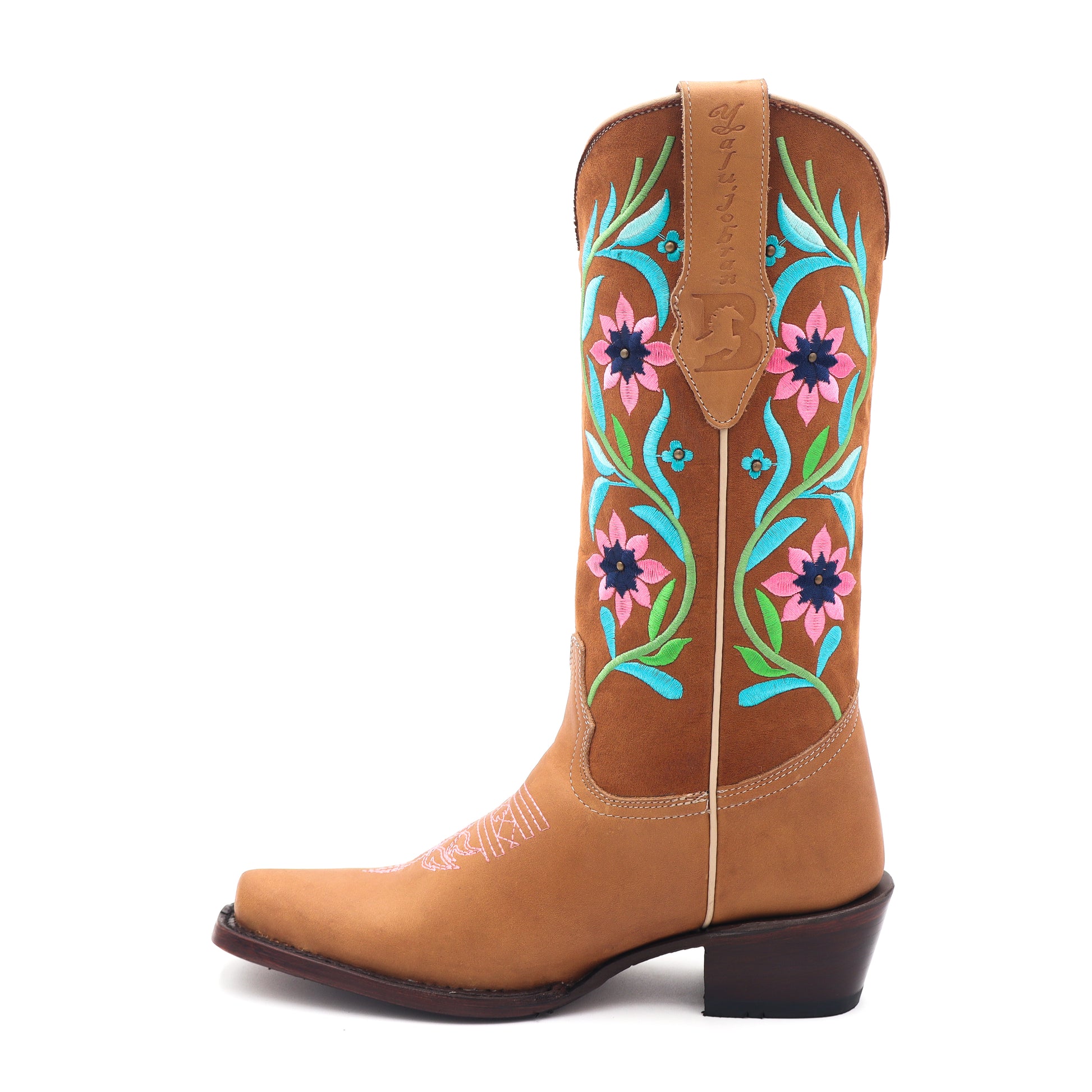 La bota alta Santa Luz Miel - Dubai destaca por su elegante altura hasta las pantorrillas y su piel con acabado crazy, que aporta una textura sofisticada y distintiva. Su suela de cuero grabada no solo garantiza resistencia, sino que añade un detalle exclusivo que realza su diseño. Esta bota es la elección perfecta para quienes buscan combinar estilo refinado con calidad artesanal en cada paso.